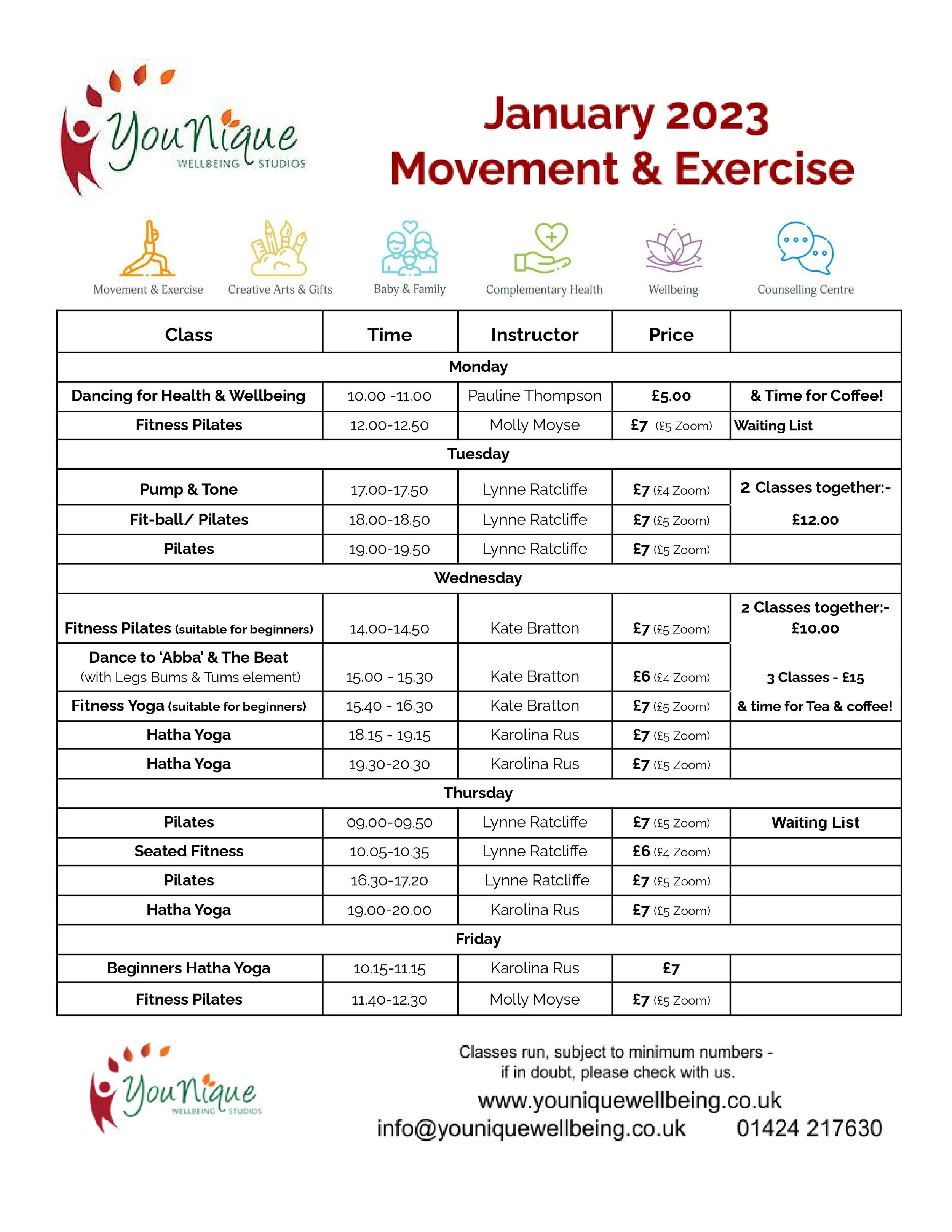 January 2023 Movement & Exercise Timetable 19 Jan Written By Carol Sargent PilatesYogaBexhillDance Carol Sargent